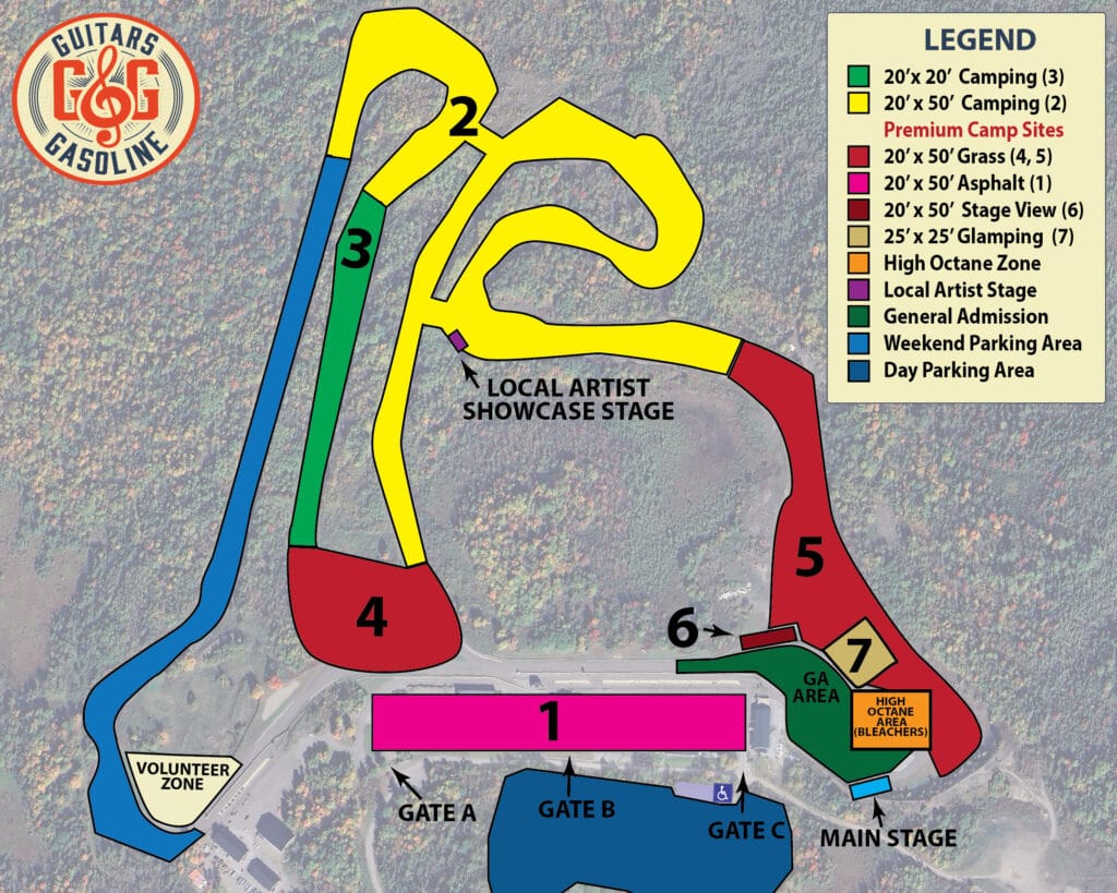 **Camping passes are sold per site, not per person, and do not provide admission to the entertainment area.