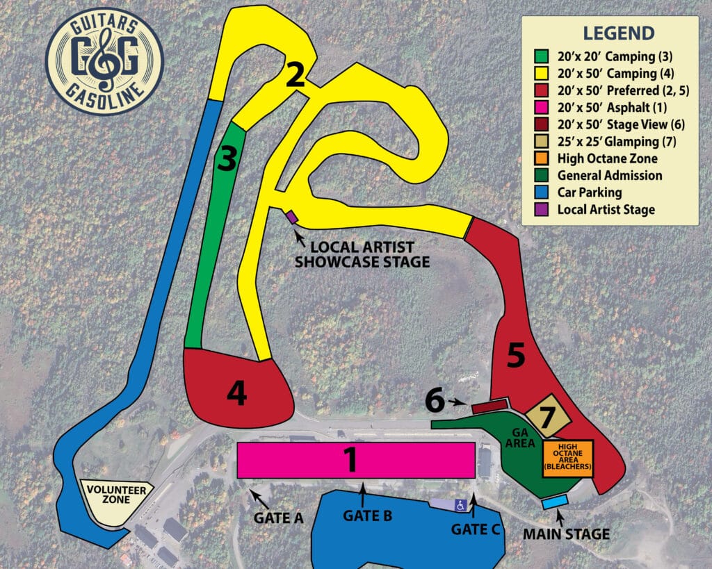 Planning your trip to Guitars and Gasoline is easy! Our festival grounds are located at Calabogie Motorsport Park, a scenic and accessible venue an hour from Ottawa. Whether you’re driving, carpooling, or getting a ride to the festival, we’ve got you covered with clear directions, parking details, and essential arrival information. Below, you’ll find everything you need to know, including gate hours, ticket pickup locations, and entry guidelines to ensure a smooth arrival.